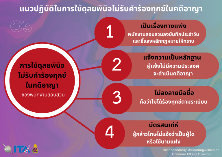 03 แนวปฏิบัติในการใช้ดุลยพินิจ ไม่รับคำร้องทุกข์ในคดีอาญา