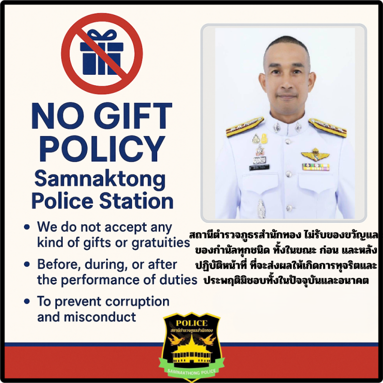 ติดภาพอินโนกราฟฟิก NoGift Policy ประชาสัมพันธ์หน้าปฏิบัติการทุกแผนกงาน
