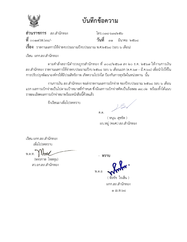 บันทึกรายงานผลการใช้จ่ายงบประมาณประจำปี 2568 สภ.สำนักทอง
